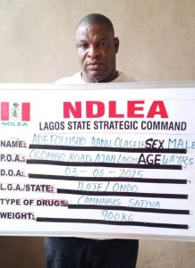The arrest came after he had evaded arrest twice and fled to Ghana to hide since June when operatives started trailing him following the seizure of two shipments of Ghana Loud, a strain of cannabis linked to him. The first seizure of 200kg of the psychoactive substance was made at Okun Ajah beach on 4th June 2025 while another consignment of 700kg of same substance was recovered from his delivery van on 6th July 2025.